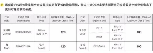 主流OEM車型實(shí)驗(yàn)數(shù)據(jù)表明,樂(lè)威路V10在標(biāo)準(zhǔn)工況下、標(biāo)準(zhǔn)燃油情況下可為車輛提供100000KM超長(zhǎng)換油周期,同時(shí),在控制油泥、煙炱沉積、保持油壓穩(wěn)定、減少摩擦損耗、酸中和能力、保持發(fā)動(dòng)機(jī)清潔、延長(zhǎng)墊片和密封件使用壽命等方面樂(lè)威路V10表現(xiàn)也十分出色,在提高車輛運(yùn)營(yíng)效率方面提供了卓越的潤(rùn)滑油解決方案。