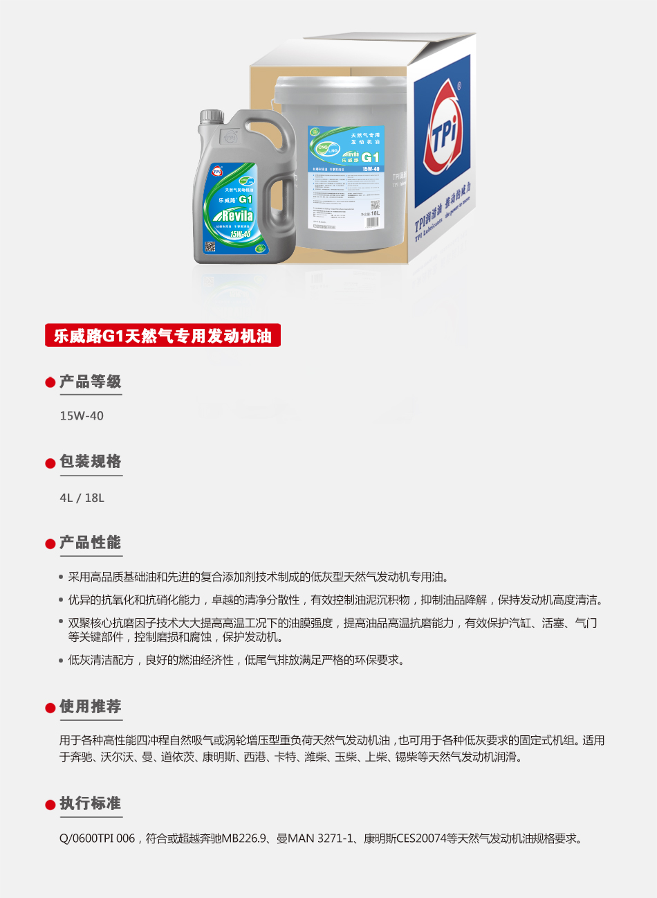 樂威路G1天然氣專用發(fā)動(dòng)機(jī)油